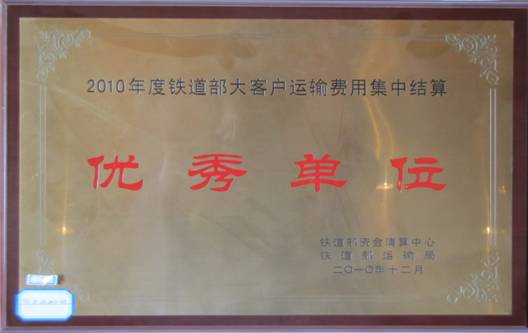 2010年度鐵道部大客戶運(yùn)輸費(fèi)用集中結(jié)算優(yōu)秀單位