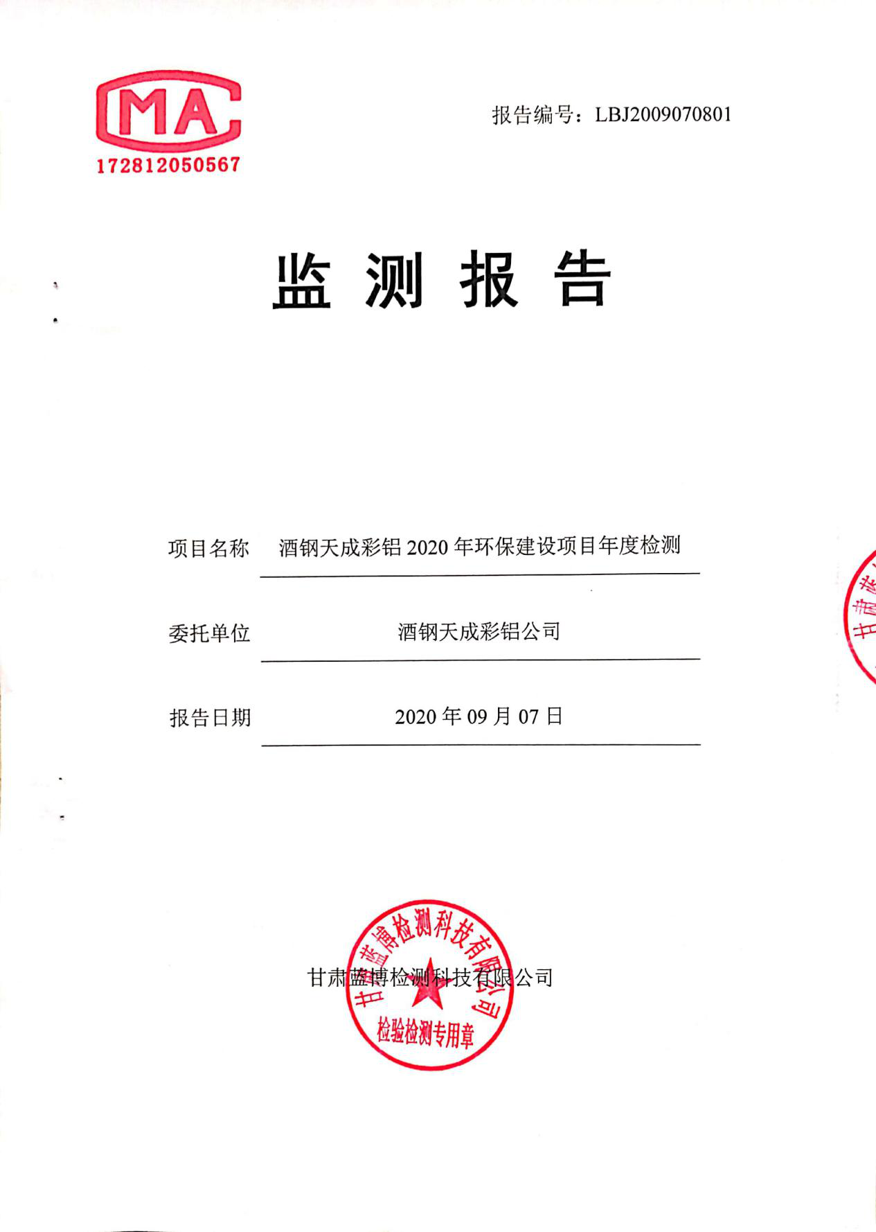 | 監(jiān)測(cè)數(shù)據(jù) | 詳見(jiàn)甘肅酒鋼天成彩鋁有限責(zé)任公司2020年土壤環(huán)境檢測(cè)報(bào)告,批號(hào):LBJ2009070801 | |||