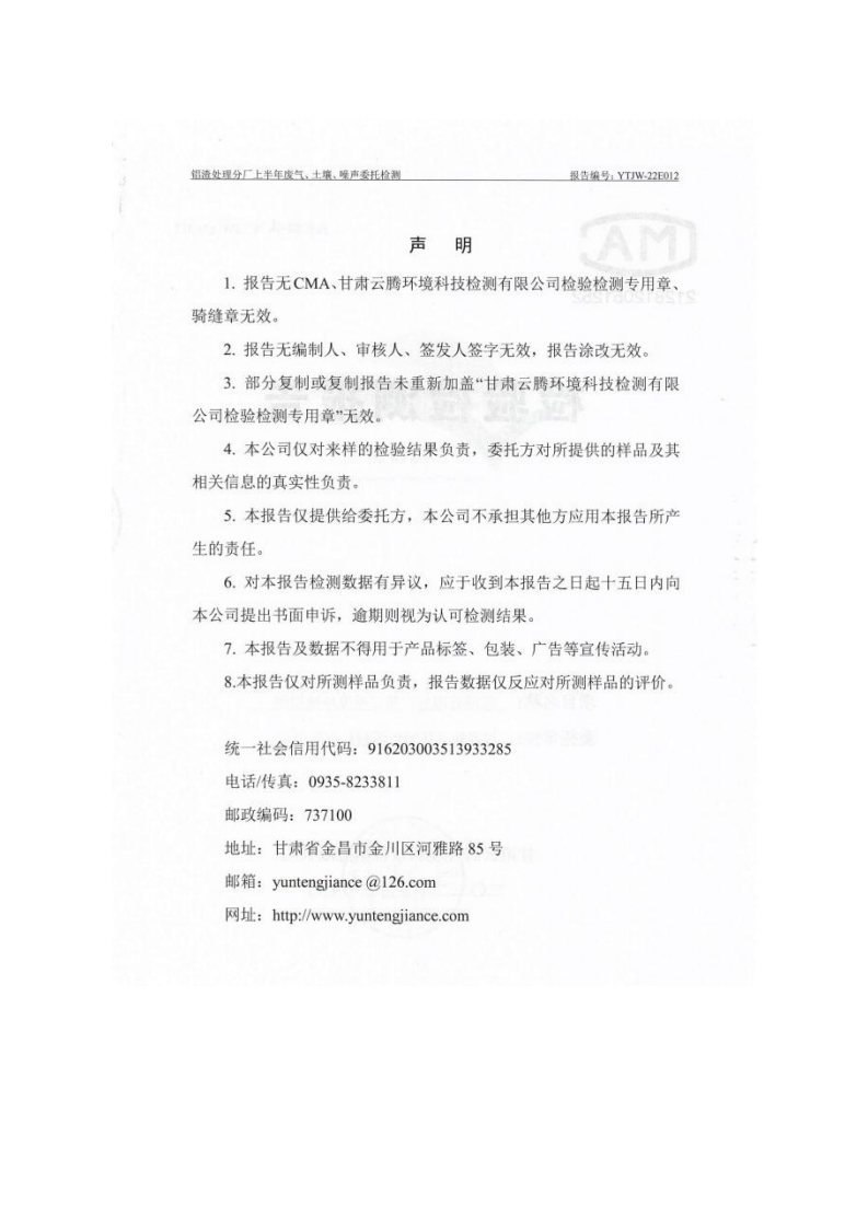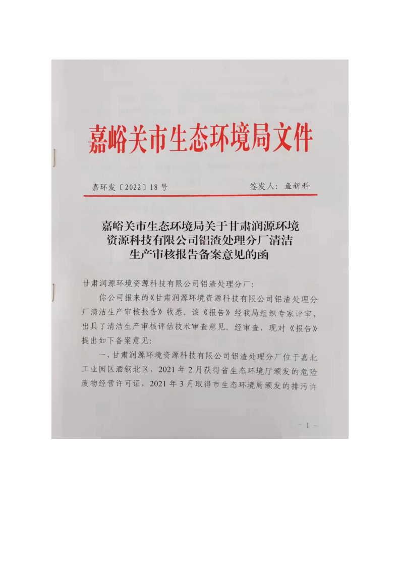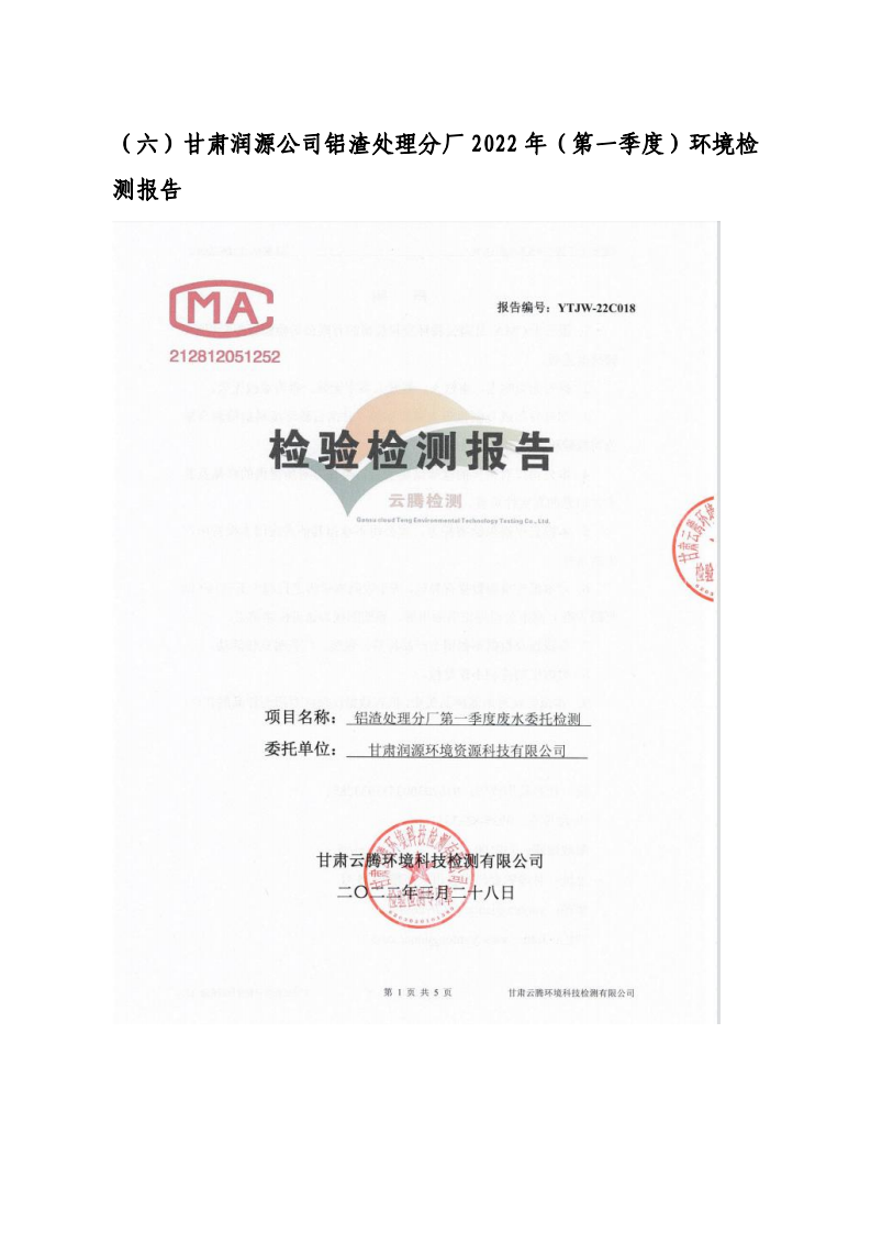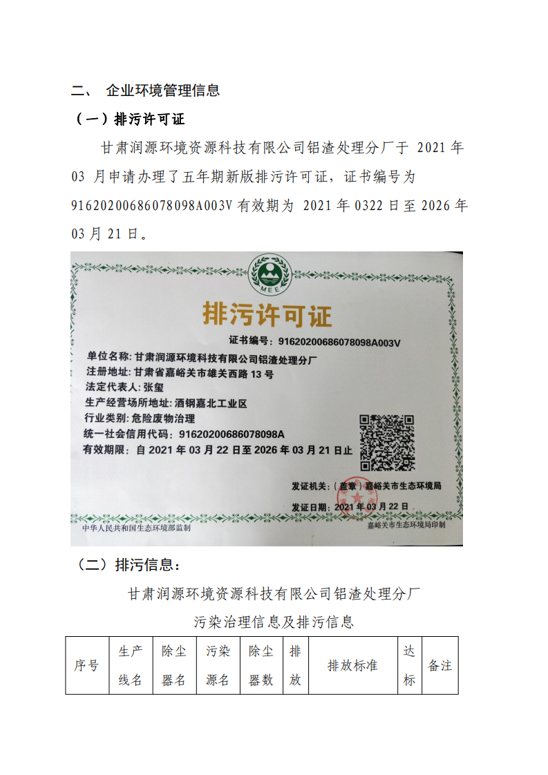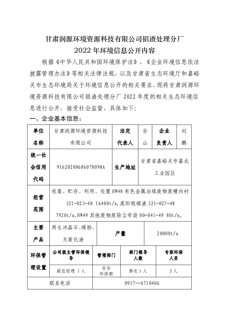 甘肅潤(rùn)源環(huán)境資源科技有限公司鋁渣處理分廠2022年環(huán)境信息公開(kāi)