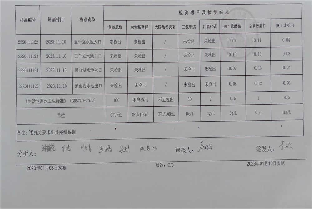甘肅潤(rùn)源環(huán)境資源科技有限公司水源地水質(zhì)2023年第四季度公示